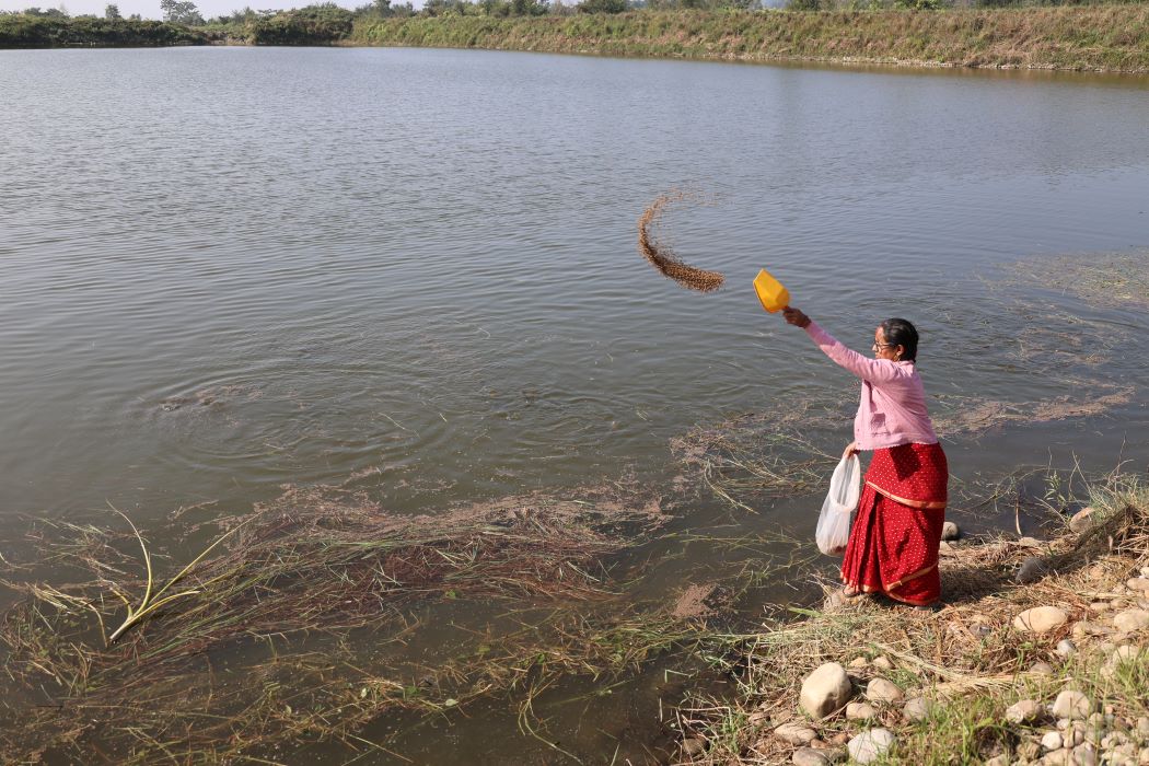चितवन । माडी– ८ की पिपला भण्डारी (५९) दिनभर माछा स्याहार्छिन् । ११ विगाह जग्गामा फैलिएका माछा पोखरी घुम्दै चारो खुवाउन उनलाई हिंडेर भ्याइँदैन । स्कुटर चढ्नु पर्छ । माछा पोखरीको रेखदेख र स्याहारमा उनलाई पति कुलप्रसाद भण्डारीले सघाउँछन् । करिव १५ बर्ष अगाडि भण्डारी दम्पत्तीका छोराहरुले माछापालन व्यवसाय सुरु गरेका थिए । तर, बजारको अभाव, बिचौलियाको ज्यादती, उधारोमा बिक्रीजस्ता कारणले घाटा हुन थालेपछि उनीहरुले यो व्यवसाय छाडेर अर्कै व्यवसाय रोजे ।