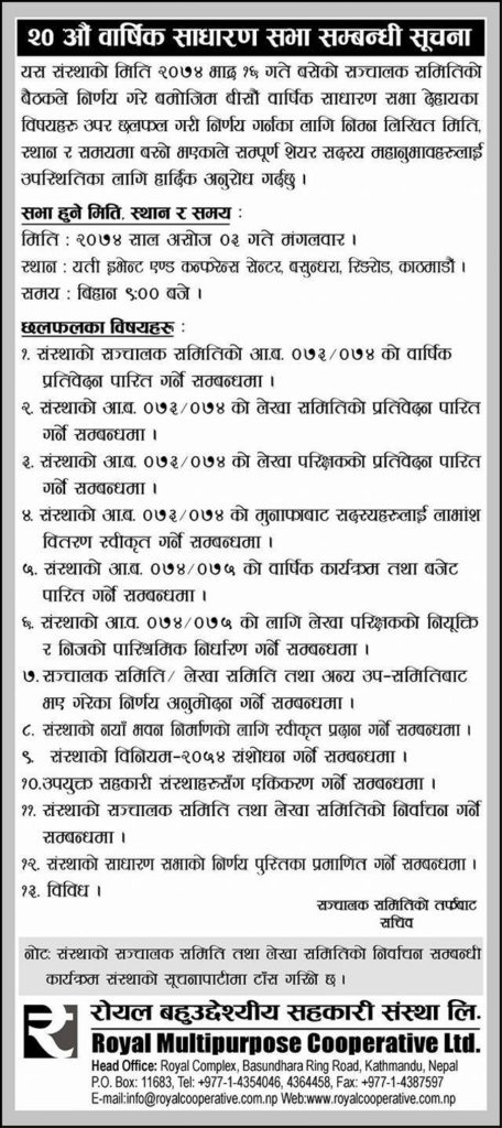 काठमाडौं । नयाँबानेश्वरस्थित जनसेवी बचत तथा ऋण सहकारी संस्थाको साधारणसभाले संस्थाको वार्षिक प्रतिवेदन, लेखापरिक्षण प्रतिवेदन पारित गरेको छ । सभामा...