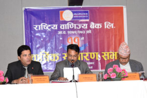 बैंक अध्यक्ष डा.रबीन्द्र प्रसाद पाण्डेले प्रस्तुत गरेको आ.व. २०७२÷०७३ को वार्षिक प्रतिवेदन पनि सो विषेष साधारणसभाले पारित गरेको छ । राष्ट्रिय वाणिज्य बैंक विश्वासनीय भएको र नेपालका बैंंकहरु मध्ये १ नम्बरको बैंक बनाउने प्रतिबद्धता ब्यक्त गरे ।