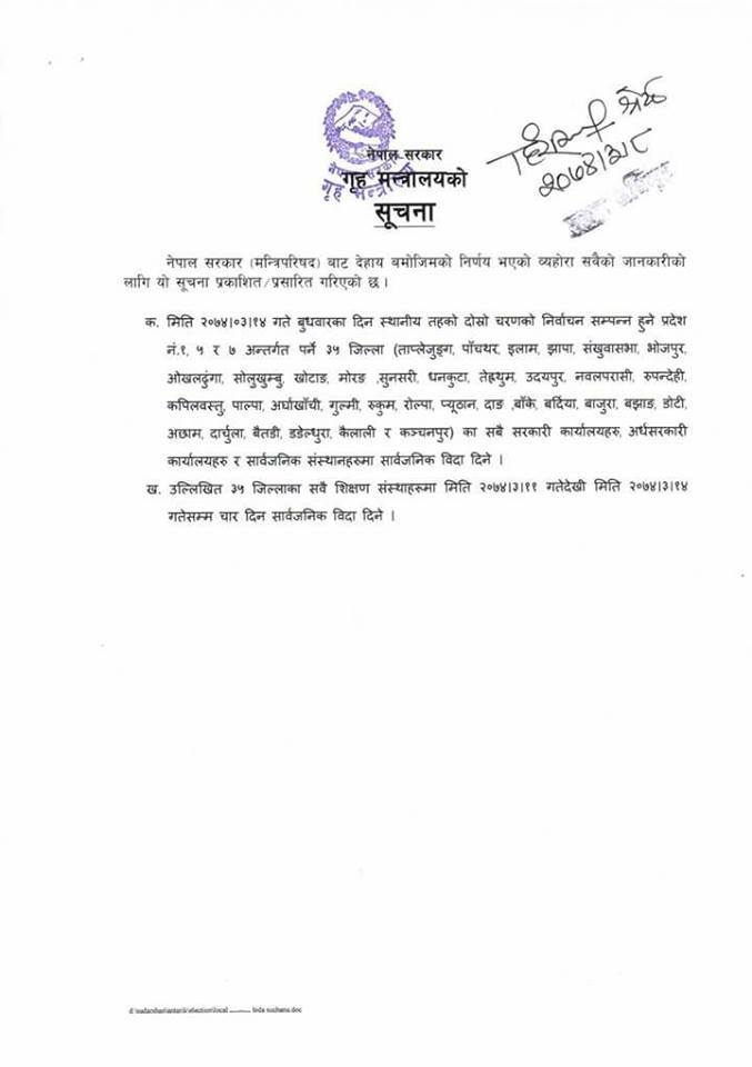 यसैगरी सरकारले दोश्रो चरणको स्थानीय निकायको चुनावको लागि सार्वजनिक विदा दिने भएको छ ।