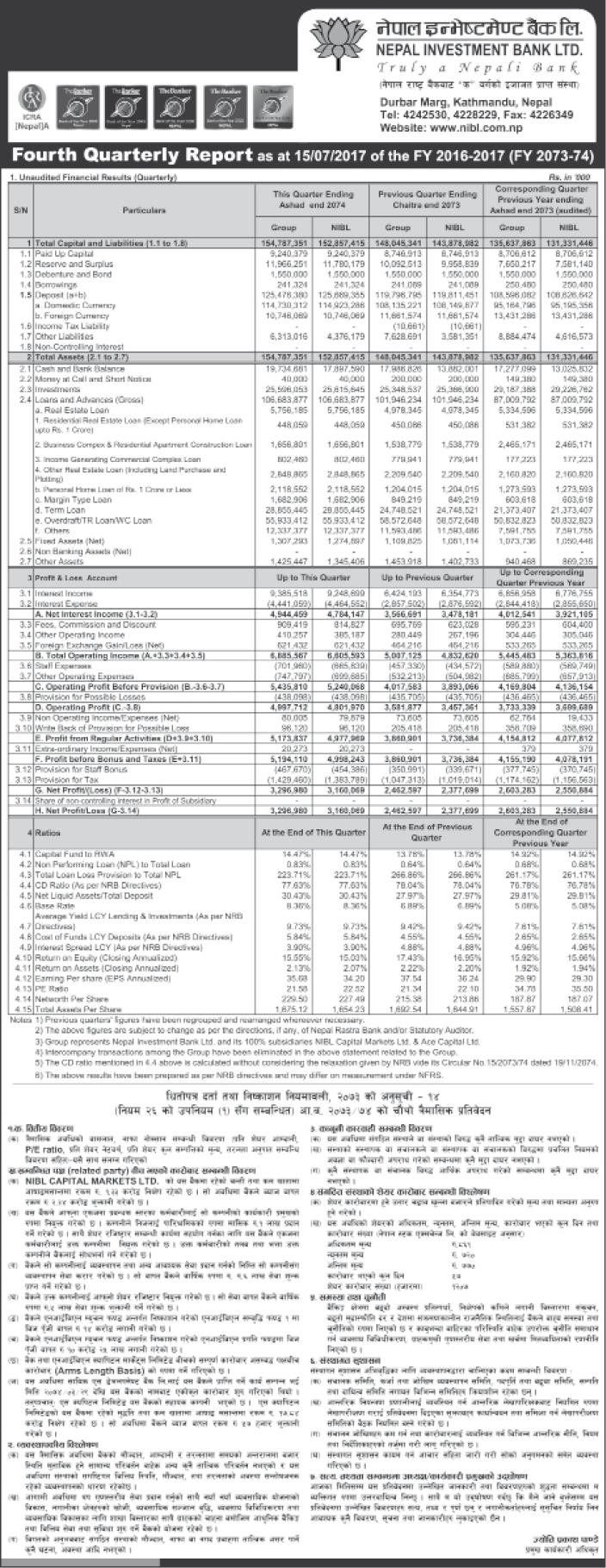 नेपाल इन्भेष्टमेन्टको नाफा ३ अर्व १६ करोड