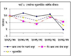 अघिल्लो वर्षको आधार मूल्यको प्रभाव, आपूर्ति व्यवस्थापन आएको सुधार एवम् भारत लगायत विश्वव्यापी रुपमै न्यून मूल्यवृद्धिको प्रभावका कारण गत आर्थिक बर्षमा मुल्यबृद्धिमा कमी आएको केन्द्रिय बैंकले जनाएको छ ।