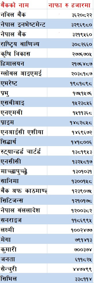हेर्नुहोस् कुन बैंकले कति कमाए ?