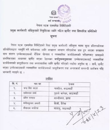 नेप्सेको महाप्रवन्धका लागि प्रारम्भिक छनोटमा ५ जना