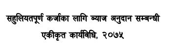 त्यसैगरी सरकारले त्यस्ता प्रकारको ऋणमा बैंकहरुले आधार दर भन्दा दुई प्रतिशत मात्र बढी लिन पाउने व्यवस्था गरेको छ । जस्तो कुनै बैंकको आधार दर १० प्रतिशत छ भने अन्तिम ब्याज दर १२ प्रतिशत हुन्छ । यसमा सरकारले ५ देखि ६ प्रतिशत अनुदान दिन्छ । त्यसो हुँदा ऋणीले बढिमा ७ प्रतिशत मात्रै तिरे हुन्छ । यस्तो कर्जामा व्याज भन्दा बाहेक अन्य कुनैपनि सुल्क बैंक तथा वित्तिय संस्थाले लिन पाउने छैन् ।