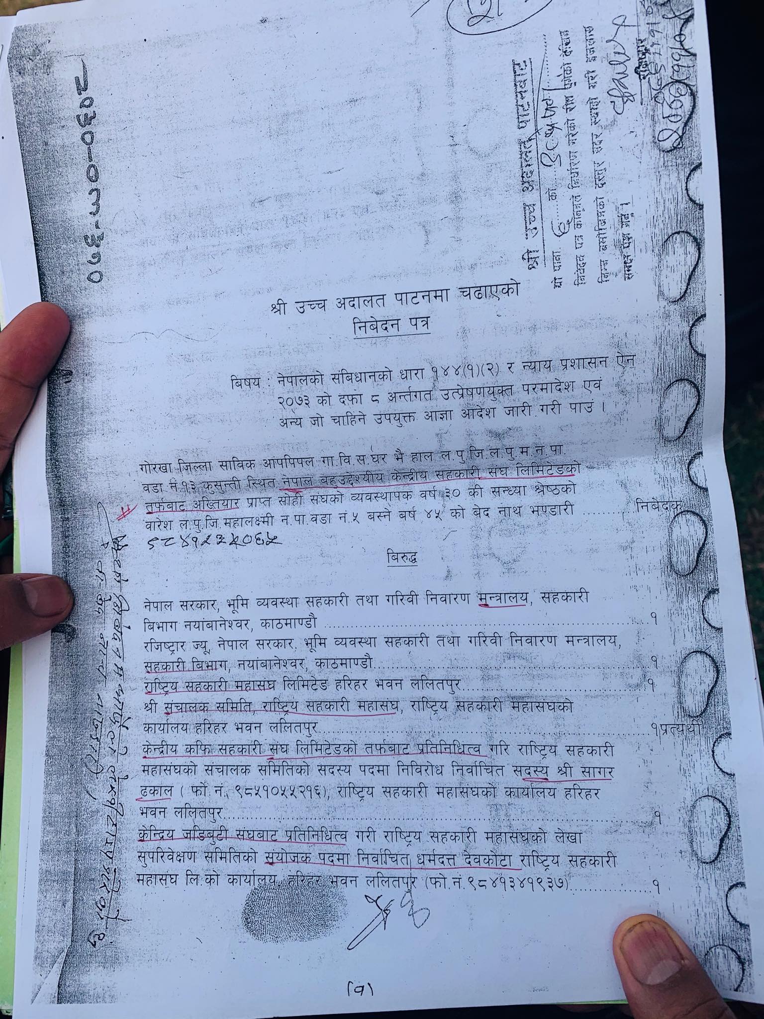 संघले यसबारेमा सहकारी विभागमा छानविनका लागि उजुरी दिएपनि छानविन तथा कारवाही नगरेपछि अदालमा मुद्दा दिएको हो । मुद्दामा मन्त्रालय र विभागलाई समेत विपक्षी बनाइएको छ ।