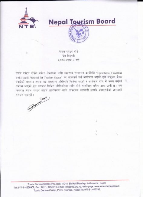 काठमाडौं । जुम मिटिङमा अश्लिल भिडियो सेयर भएको घटनामा नेपाल पर्यटन बोर्डले क्षमा मागेको छ । सोमबार प्रेस विज्ञप्ति जारी गर्दै बोर्डले भर्चुअल मिटिङमा अनाधृकत रुपमा प्रवेश गरी असामान्य परिस्थित सिर्जना भएको र कार्यक्रम बिचैमा अन्त्य गर्नुपरेकोमा क्षमा मागेको हो । घटनाबारेमा छानविन अघि बढिसकेको पनि विज्ञप्तीमा उल्लेख छ ।